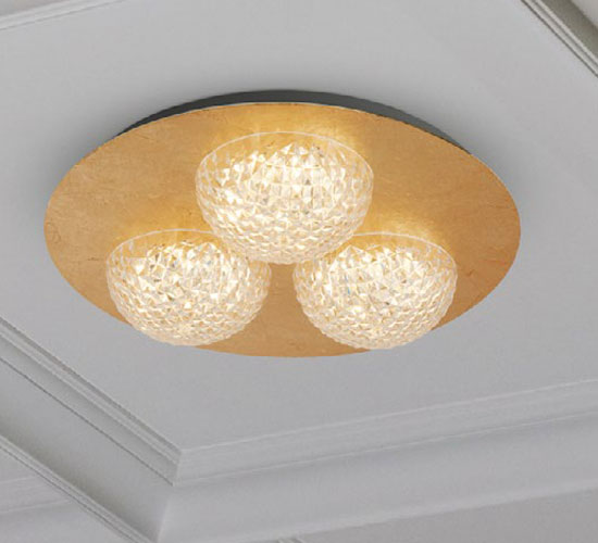 Celestia 3 LED Ceiling Light In Gold Leaf With Clear Acrylic